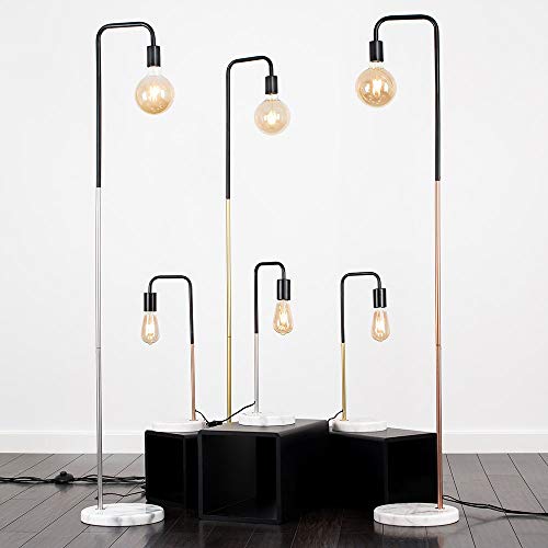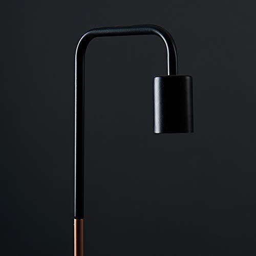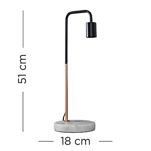 This copper and black table lamp has a solid marble base, and has a retro style feel. The design features a sleek metal rod arm with a bulb, and a circular marble base. It is constructed from high quality materials, and a heavy circular marble base, which gives the table lamp a sturdy feel. This copper table lamp is sure to make a statement within your home, ideal for living room, dining room, hallway, bedroom, office. A squirrel cage bulb is recommended with this lamp.