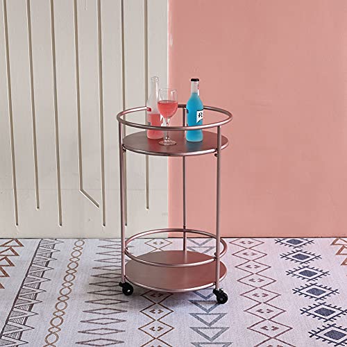 Copper Rose Gold Trolley | Round 2 Tier Rolling Cart | Durable Serving Drinks